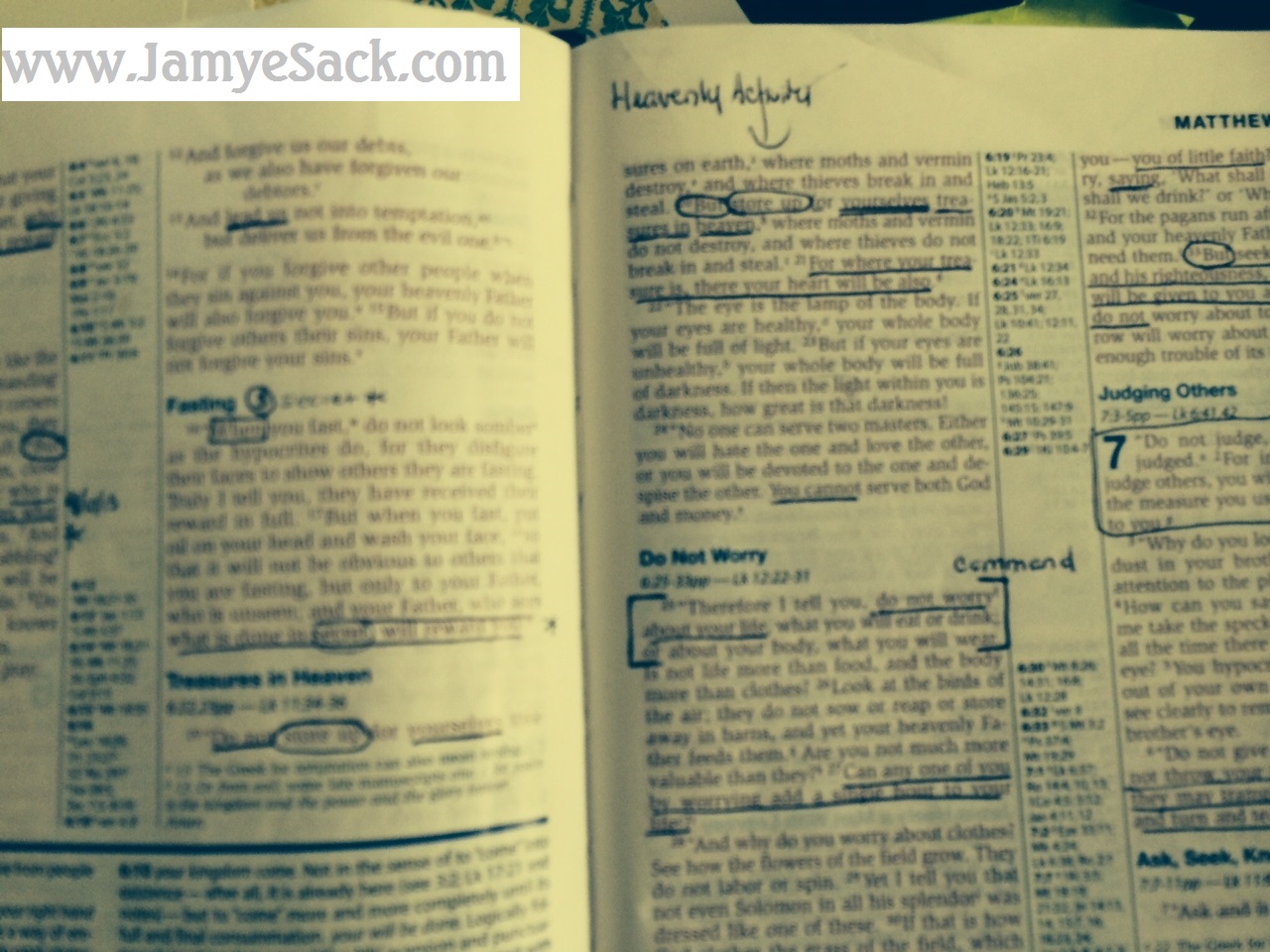 Here are a couple of pictures of my study of money from the Word of God {Sermon on the Mount given by Jesus in Matthew}. One picture is of the inside of my Bible. The other image is of the notes that I took while I studied. This was a quick study that didn’t involve too much cross-referencing or a deep & hourly study. It simply tracks my diving into Jesus’ words to get to the heartbeat of God. Ohhhh, how I love His heartbeat!!!