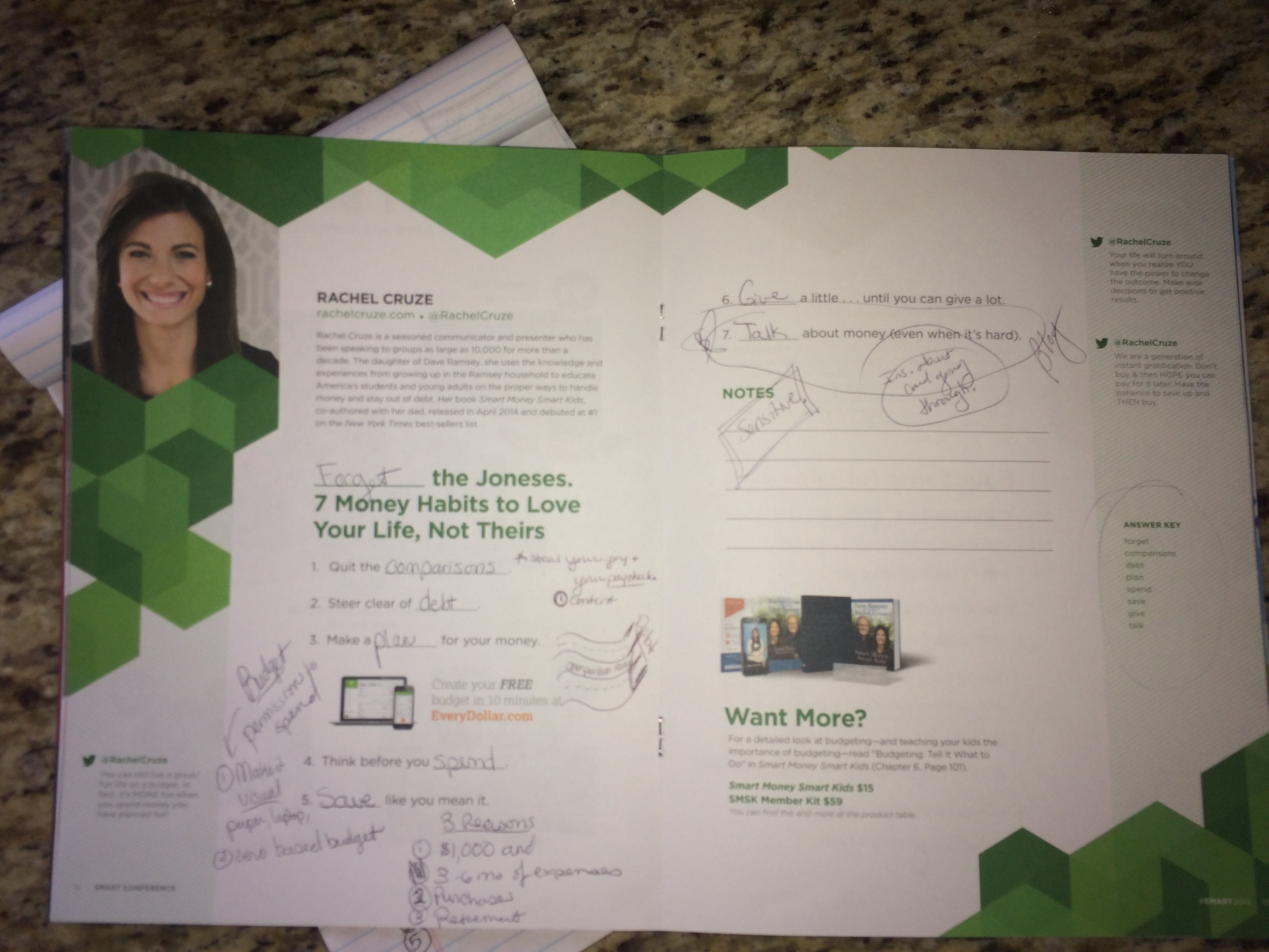 Who is she? “Rachel Cruze is a seasoned communicator and presenter who has been speaking to groups as large as 10,000 for more than a decade. The daughter of Dave Ramsey, she uses the knowledge and experiences from growing up in the Ramsey household to educate America’s students and young adults on the proper ways to handle money and stay out of debt. Her book Smart Money Smart Kids, co-authored with her dad, released in April 2014 and debuted at #1 on the New York Times best-sellers list.”