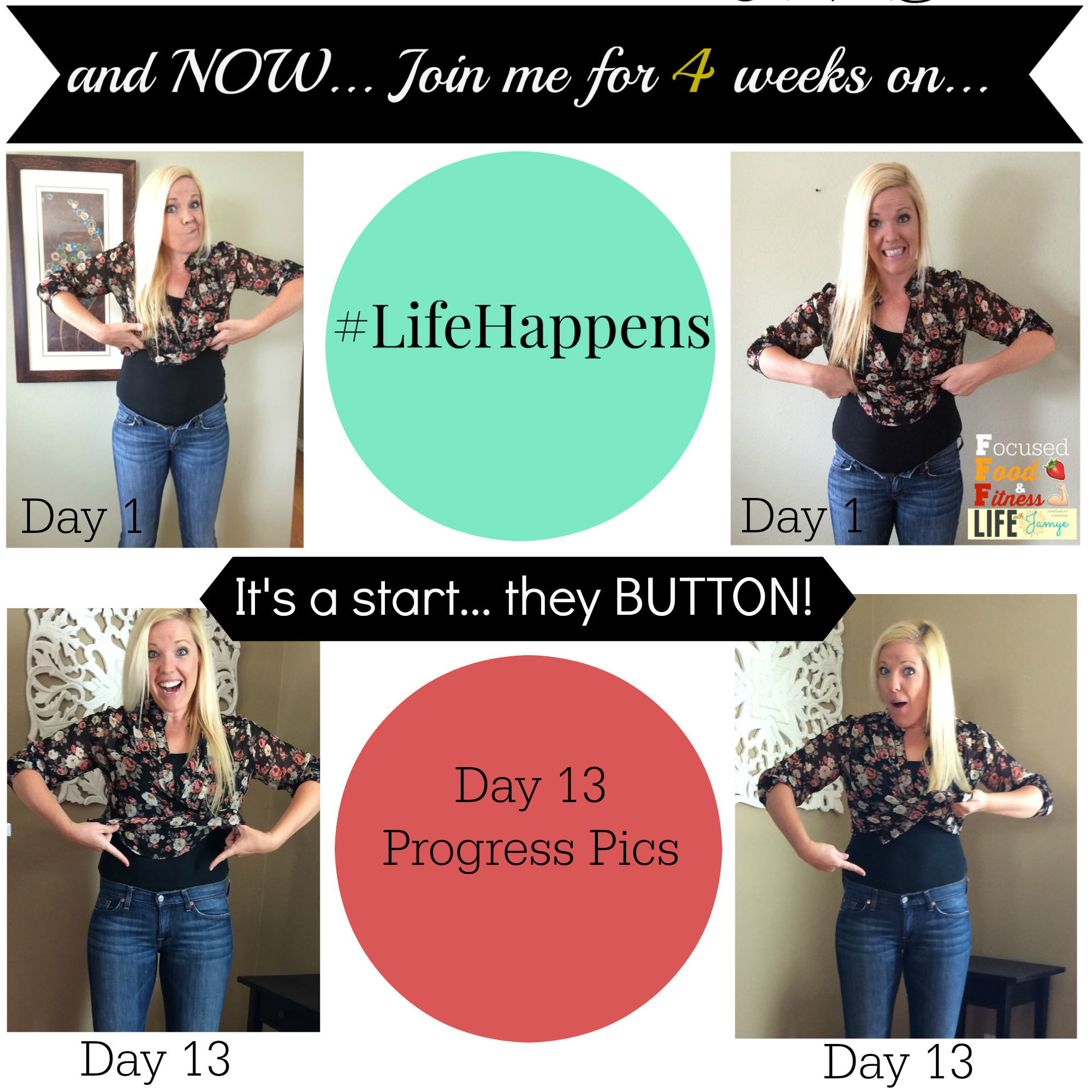 In my commitment to be transparent {for me, painfully transparent at times}, I am giving you an update on my progress pics. So here they are! Day 1 to Day 13.