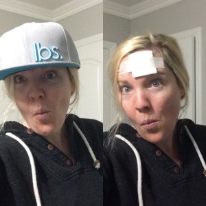 An emotionally exhausting 5 1/2 hours later, the cancer was all gone and I was sent home with an unstitched quarter sized “ice cream scoop” out of my forehead. Yes, I know!! I didn’t know that skin could go THAT deep either!!!